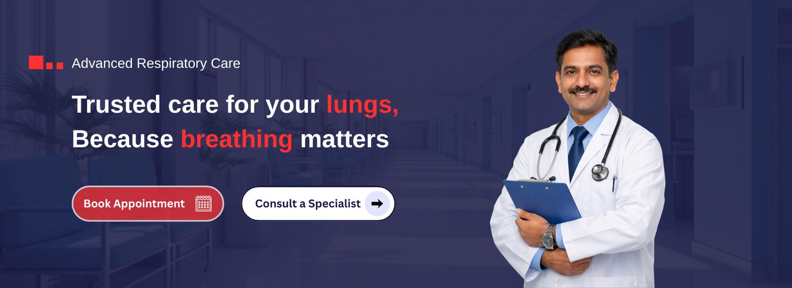 Breath Well Hospital specializes in respiratory and chest care, including diagnosis and treatment of asthma, COPD, lung infections, sleep-related breathing disorders, and other pulmonary conditions.